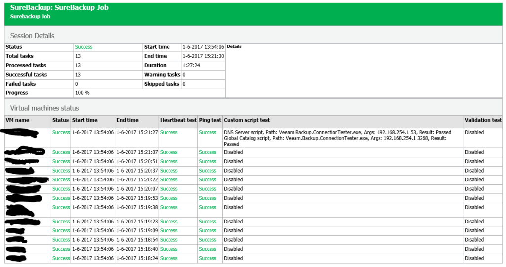 Hierdoor weet je zeker dat je gerestorede VM’s op kunnen starten, consistente data bevatten en als je servers met een Active Directory, Exchange, SQL etc. Role hebt, kunnen die roles specifiek getest worden waardoor je hier ook zeker bent van werkende applicatie servers.
